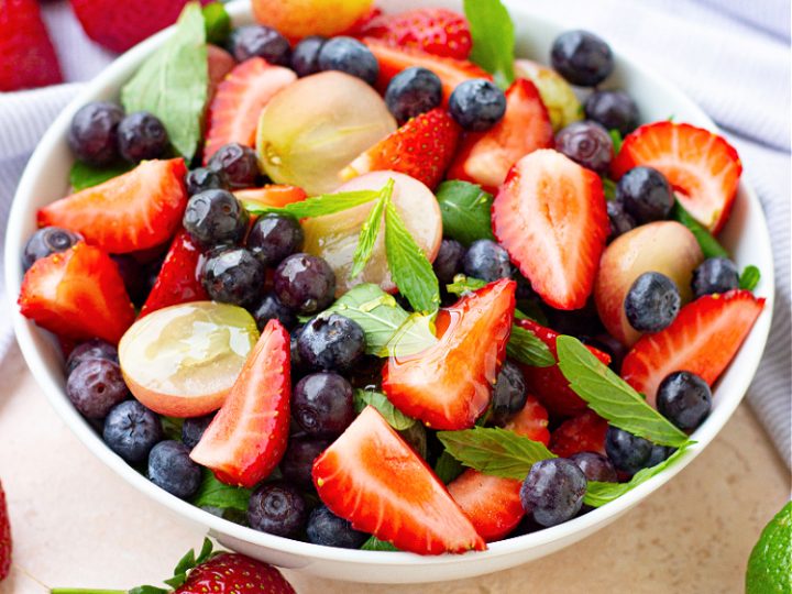 This fresh berry grape salad is a joy to make and to eat. With fresh strawberries, blueberries, and grapes and a simple dressing of lime juice and honey, this is a fruit salad that you can eat to your heart’s content.