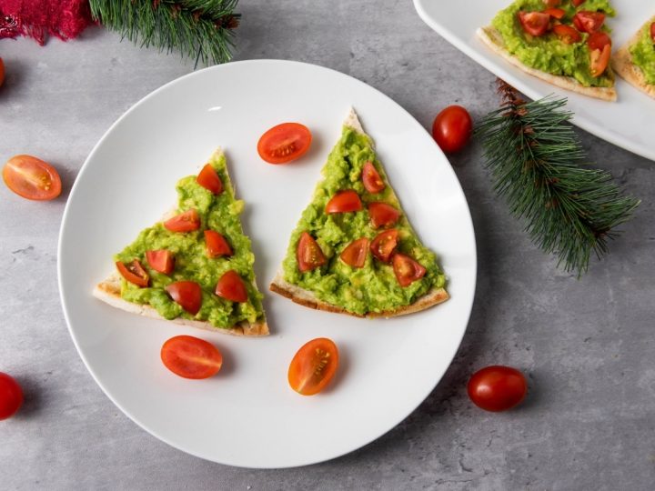 Soft pita slices topped with creamy avocado and juicy cherry tomatoes make Pita Avocado Christmas Trees a fresh and festive holiday bite. Easy, colorful, and full of flavor, they’re the perfect cheerful snack or appetizer for any holiday gathering!