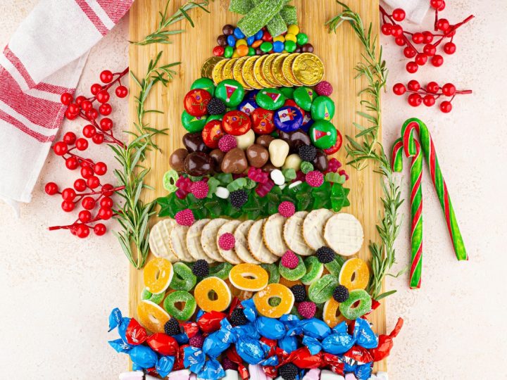 Turn dessert time into a holiday showstopper with this Sweet Christmas Tree Charcuterie! Packed with candies, cookies, chocolates, and jellies, it’s bright, fun, and irresistibly festive—shaped like a Christmas tree and topped with a shiny jelly star for that extra merry touch.