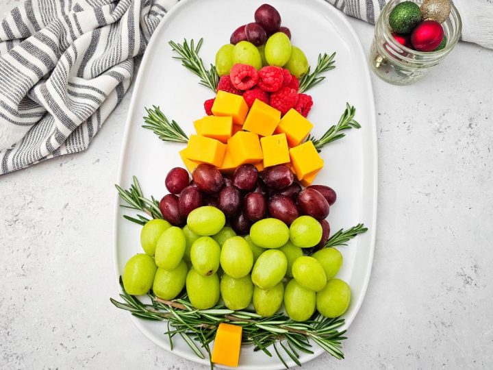 Bring color and cheer to the table with a Holiday Tree Fruit Platter! Fresh fruit and cheese are arranged into a festive Christmas tree shape, making a bright, wholesome centerpiece that’s as fun to make as it is to share.