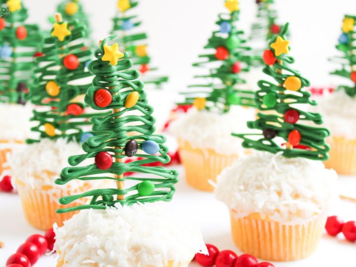 Christmas Tree Pretzel Cupcakes are merry little delights topped with snowy coconut frosting and pretzel stick trees made from green candy melts. Decorated with mini M&M ornaments and star sprinkles, they’re a fun, easy treat that’s as magical to make as it is to eat.
