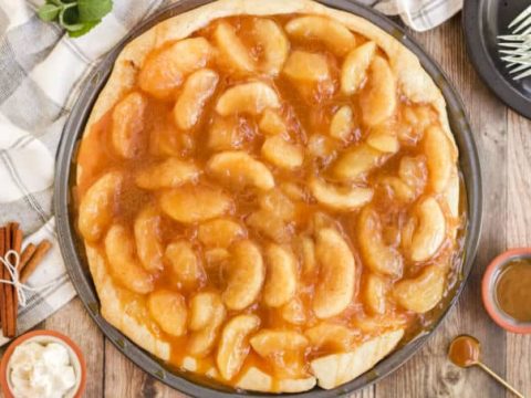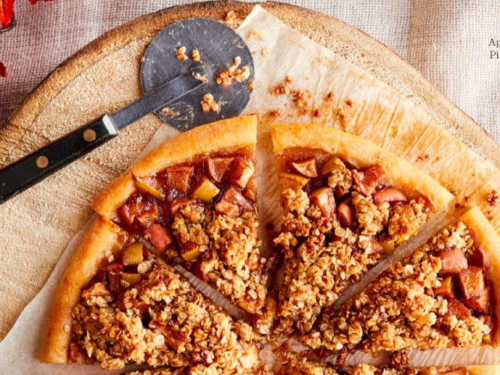This easy apple dessert pizza is one of those desserts that just stops people in their tracks. Part apple crisp, part pizza this dessert is full of cinnamon and sweet apples with a buttery crumble topping. It’s all the fun of pizza with gooey, buttery fall apple flavor mixed into one.