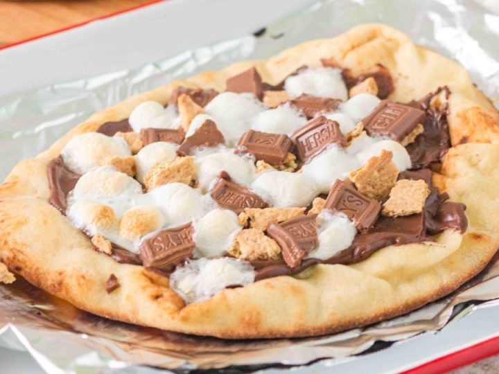 This campfire s’mores pizza is everything you love about classic s’mores. It’s easy to make with just a few ingredients and perfect for cooking over a campfire or grill.