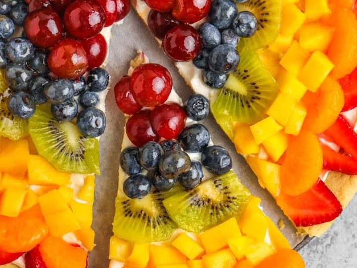 Easy Fruit Pizza is the perfect summer dessert that’s as beautiful as it is delicious. Made with a soft sugar cookie crust, a creamy cream cheese frosting, and topped with colorful fresh fruit, this simple recipe is always a crowd favorite.