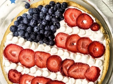 Made with soft sugar cookie dough, creamy Cool Whip, and fresh fruit arranged to look like the American flag, this red, white, and blue fruit pizza is as fun to make as it is to eat.