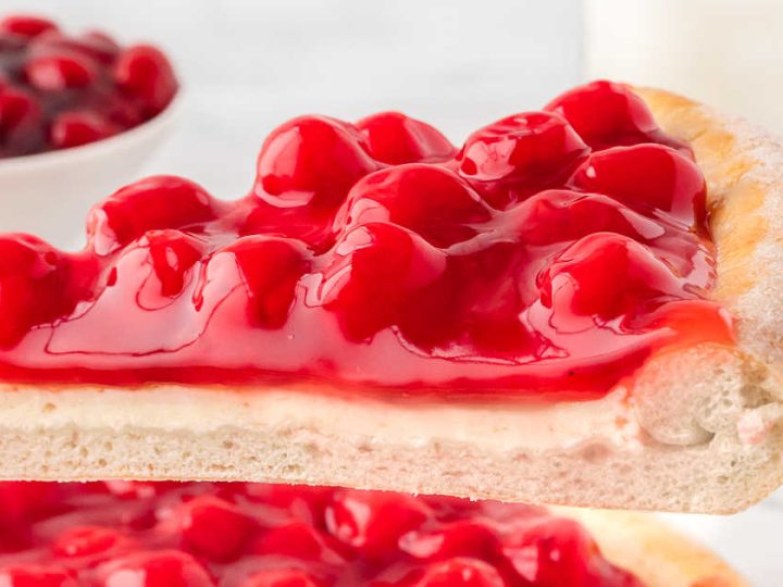 NYC’s favorites combined for the best dessert pizza! Smooth cheesecake filling covered with cherries in a thick, sweet syrup is a perfect handheld dessert for your next party. Each bite of Cherry Cheesecake Pizza melts in your mouth.