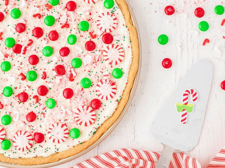 This festive dessert starts with a soft sugar cookie crust, topped with creamy frosting, and decorated with red and green sprinkles, candies, and holiday treats. It’s the perfect Christmas party dessert, kid-friendly baking idea, and a fun holiday recipe that looks as good as it tastes.