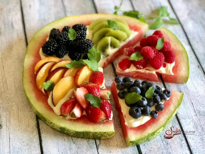 This refreshing watermelon pizza is the ultimate summer treat. Made with juicy watermelon slices topped with fresh fruit, yogurt. It’s a healthy and colorful dessert everyone will love. Perfect for summer parties, backyard barbecues, or a light snack - it makes an awesome no-bake summer dessert.