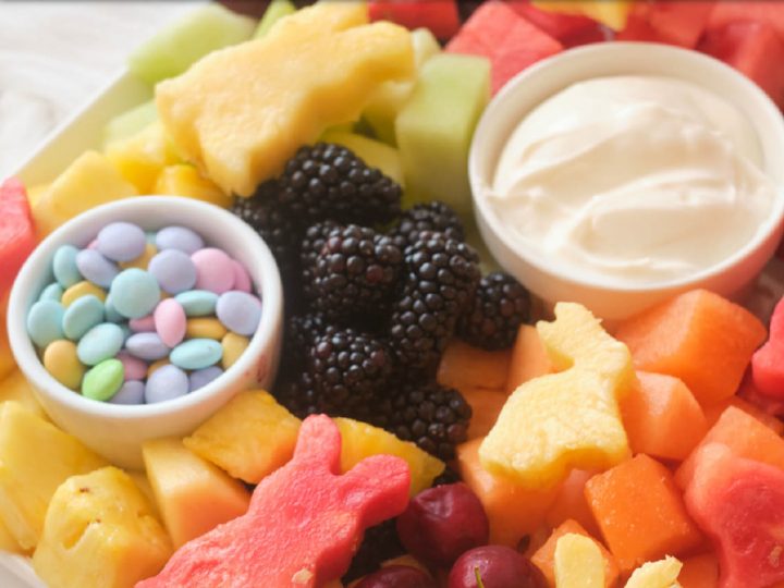 Candies aren’t the only sweets that can fit an Easter theme. Use cookie cutters to offer up fruits in various Easter shapes for this board.