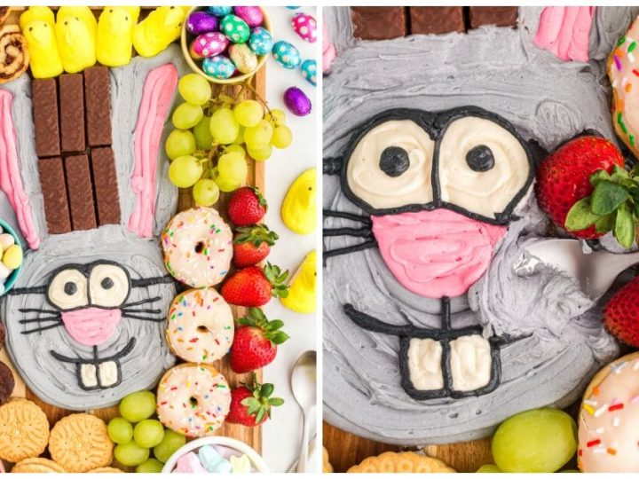 This adorable, sweet spring sharing platter comes with a quick download bunny head template to help you construct the perfect sweet charcuterie board for kids' Easter parties.