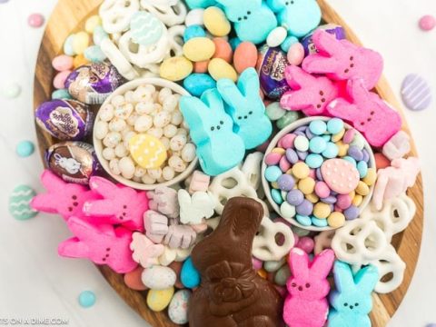 This charcuterie board is loaded up with sweet treats that are perfect for Easter. With classics like Peeps, jellybeans, and Cadbury eggs, you can’t go wrong.