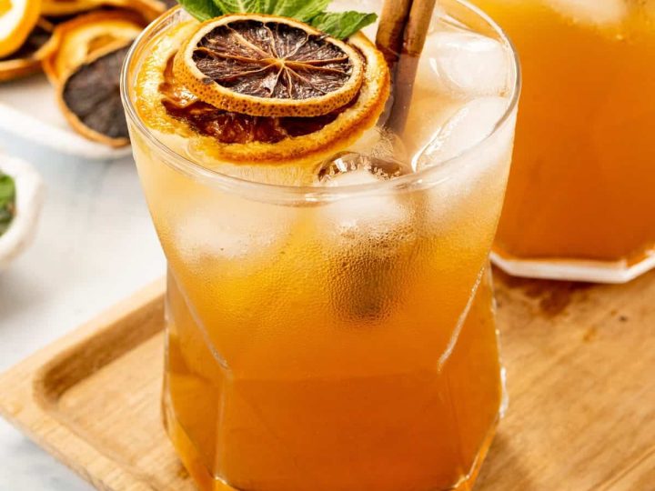 This Thanksgiving cocktail comes from a surprising base, since it’s made with black tea. The resulting beverage is spiced, refreshing, and fits right in on the Thanksgiving table.