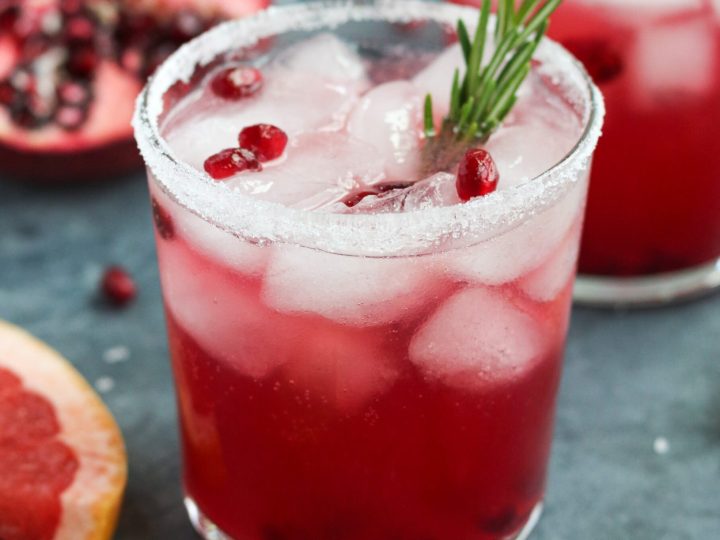 Pomegranates are another fruit that is in season for Thanksgiving, and it makes a great addition to the table. These pomegranate palomas are cool and refreshing, and go perfect with a rosemary sprig at the garnish.