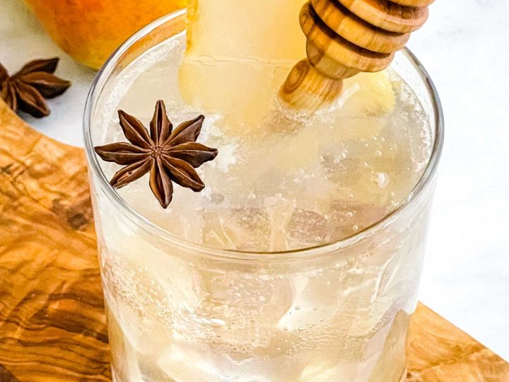 A Tom Collins is usually considered a light, refreshing, summery drink. But a couple simple tweaks like adding in pear flavors and honey make it a tasty fall favorite.