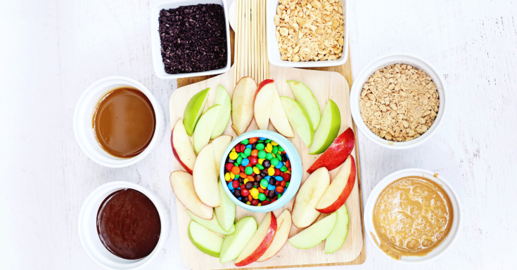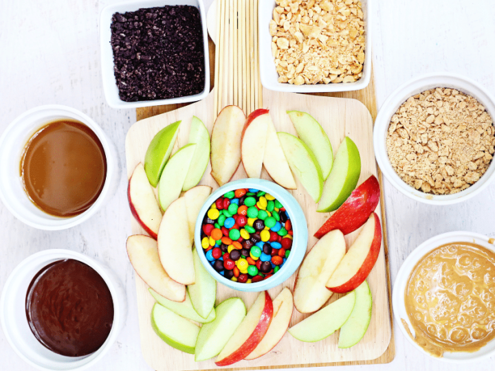 Add a DIY element without losing the charcuterie flair with this fantastic board idea. Placing out apple slices with the various sauces and toppings lets the gals each make their own custom treat.