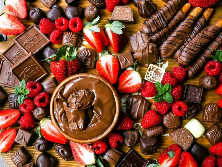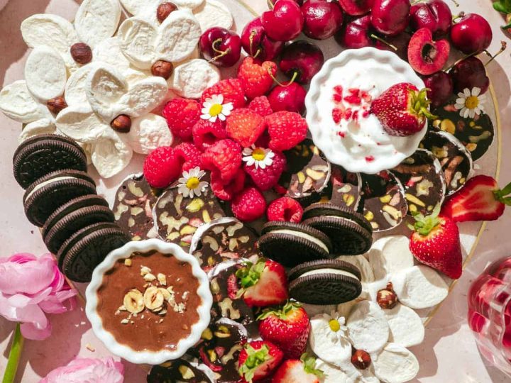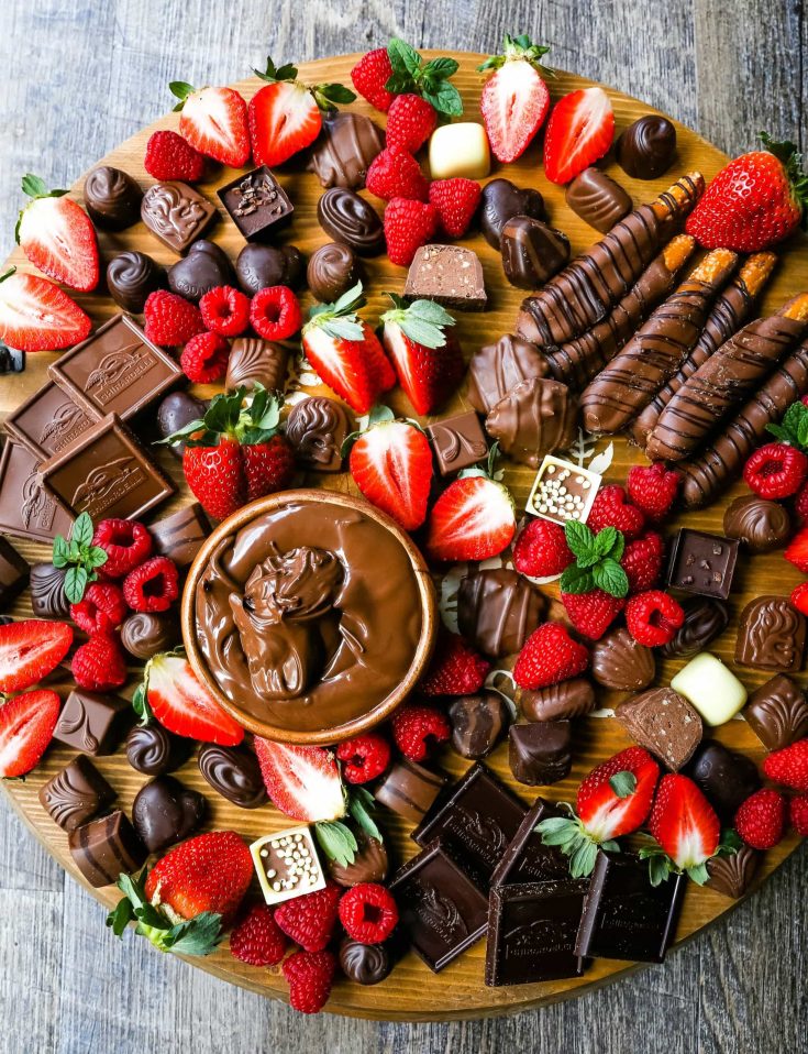 This board is a chocolate lover’s dream, filled with chocolate treats in every form. Fresh berries add a bright pop of color and a fresh contrast to all that richness.