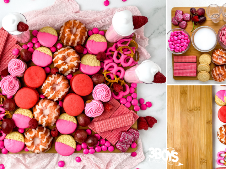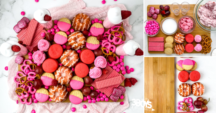 You’ll find candy-loaded trays bursting with pink treats, cozy breakfast boards with waffles and bacon roses, chocolate-packed dessert spreads, colorful puppy chow, and even savory meat and cheese boards with just a hint of sweetness. There are gluten-free options, make-ahead snacks, DIY apple and dip boards, and playful ideas like edible bouquets and movie-night boards.