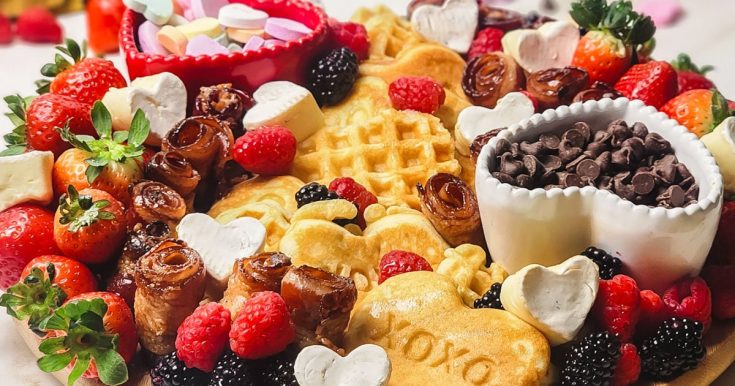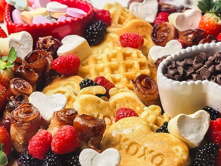 Host a Galentine’s brunch with a breakfast board that’s fun, cozy, and made for sharing. Heart-shaped waffles and bacon roses lead the way, joined by a mix of sweet and savory bites everyone will love.