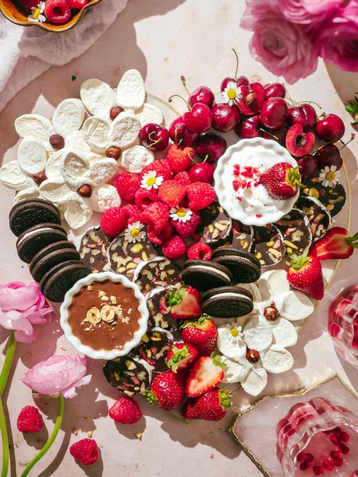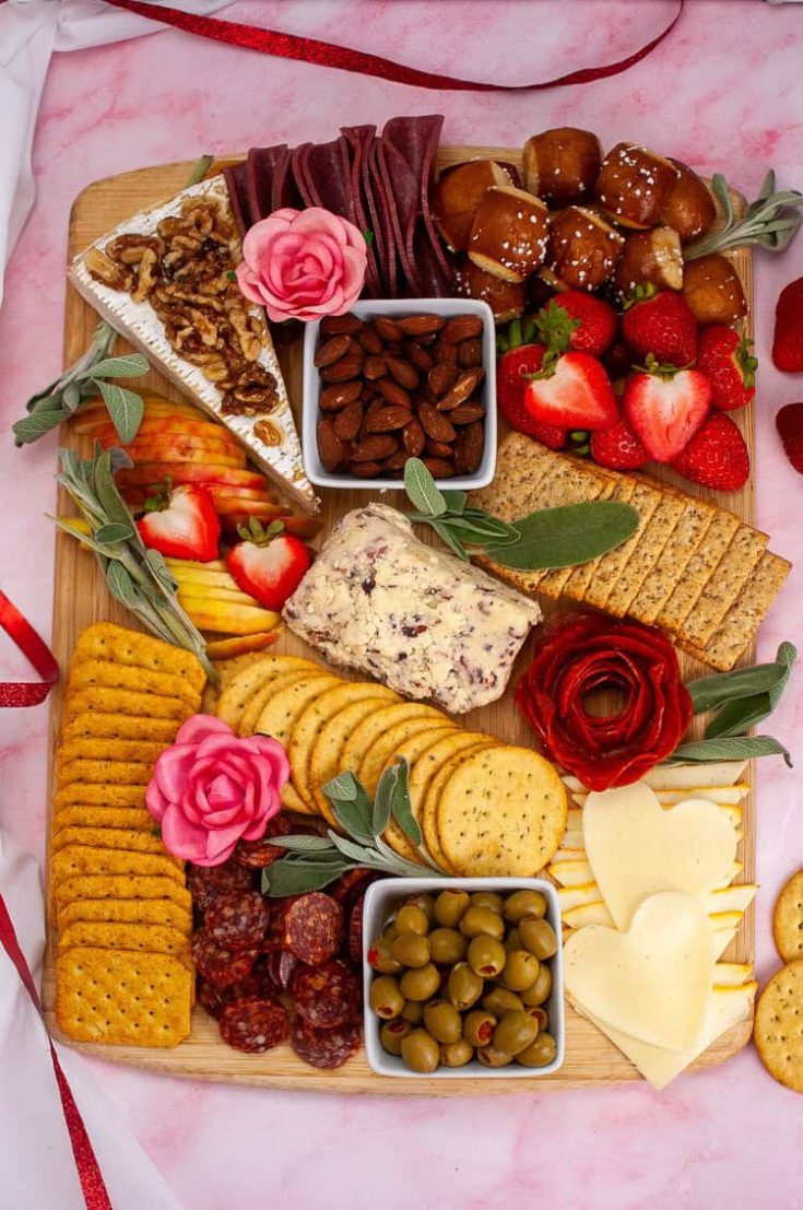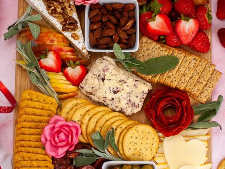 Here’s a fantastic charcuterie board with all of the Valentine vibes that make for a great Galentines meetup. But instead of overly sweet, it has lots of salty, savory options with just a light touch of sugar to keep things interesting.