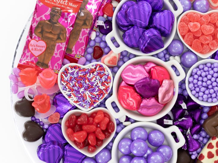 While many Galentines charcuterie boards feature fancy or hard to find ingredients, it doesn’t have to be that way. These simple staple candies and treats are available at most grocery stores and still look fantastic when arranged together.