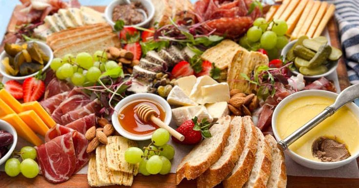 A lot of people hear the word charcuterie and think it has to be fancy, but that’s not so. This board is loaded up with basic, solid options for loads of flavor combos.