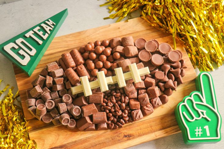 This game day charcuterie board is such a clever idea and perfect if kids are attending the game day party. Make a football out of various chocolate and white chocolate candies, and send them all home with a sugar rush.