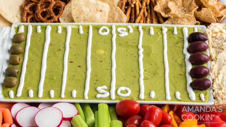 A guacamole football field isn’t for everybody, but for those who pull it off, it’s legendary. This option even has two colors of olives facing off against each other on a green guacamole gridiron.