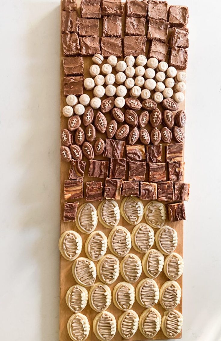 Why should meats and cheeses have all the fun, and why should the sweetest thing on a charcuterie board be a grape? This one is all about the desserts, complete with a dippable frosting football gracing the center spot.