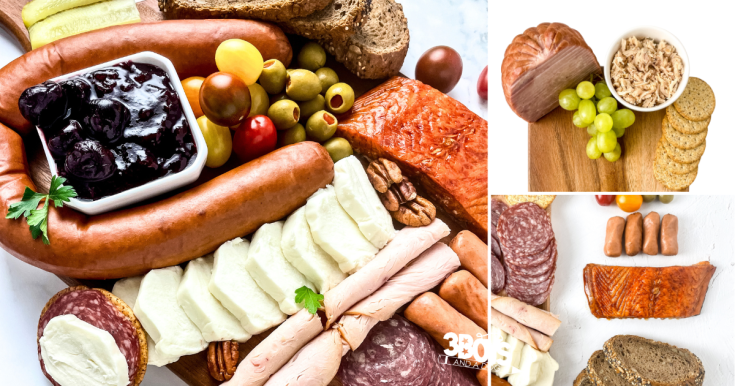This charcuterie board is keeping things smoky and delicious. Loaded with almost every kind of smoked meat imaginable, it’s a well-preserved paradise of flavor.