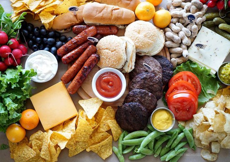 Here’s a wild spin on the standard charcuterie option; it’s a grill board. Loaded with grilled hot dogs, burgers, and toppings, guests can make their own entrée however they wish.