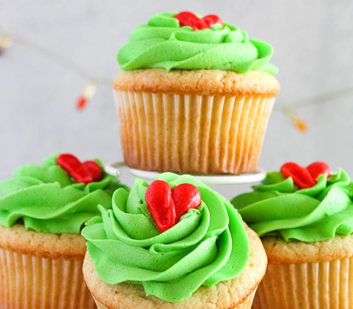 Here’s a nice, simple cupcake recipe with a Grinchy twist. It doesn’t take much to make a fantastic Grinch treat, as this recipe shows.