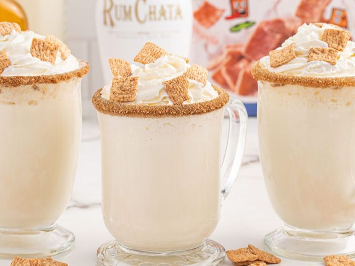 The Cinnamon Toast Crunch cocktail is designed to taste like the milk left over after a bowl of the cereal. Rumchata mixes perfectly with Fireball for a slightly spicy cinnamon kick.