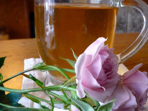 The hot brandy rose is a super simple warm drink when you need something to soothe you just before bed. It’s hot tea flavored with brandy and rose petals, and it’s so good.