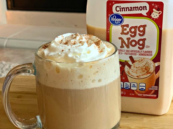 Eggnog coffee is a cozy holiday treat all by itself. For an extra kick, add a splash of rum or grab a pre-spiked version from the store.