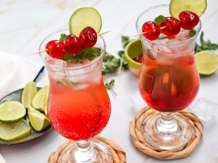 This Shirley Temple Mocktail is a sweet, bubbly blend of ginger ale, grenadine, and citrus, garnished with maraschino cherries, lime slices, and fresh mint leaves. Great for moms-to-be, it’s a fun and refreshing alcohol-free drink everyone can enjoy.