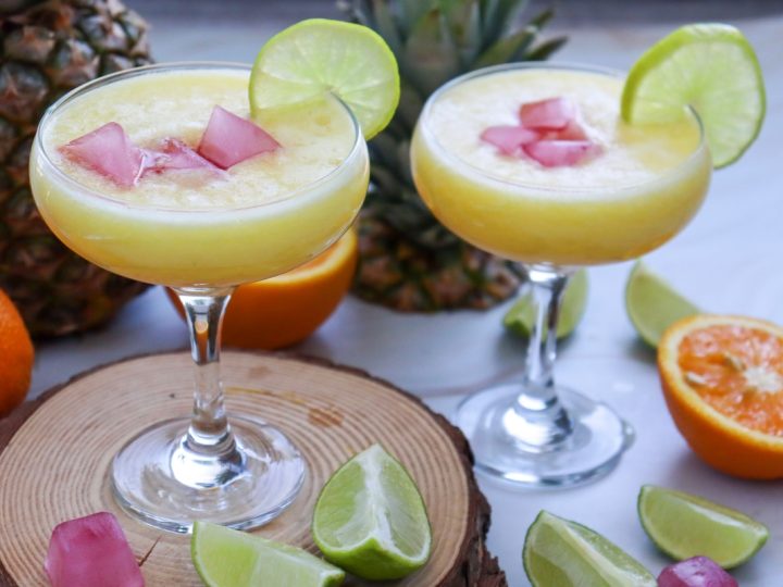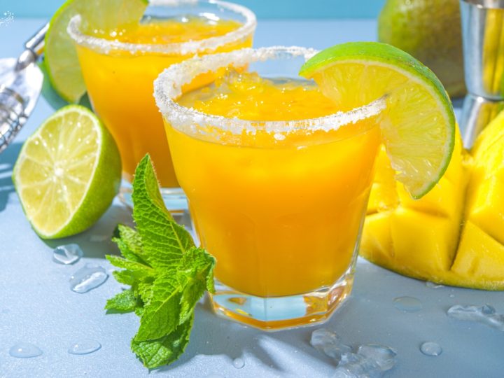 This vibrant mocktail offers a tropical spin on a classic, combining frozen mango, zesty citrus juice, and hydrating coconut water for a refreshing, alcohol-free summer drink.