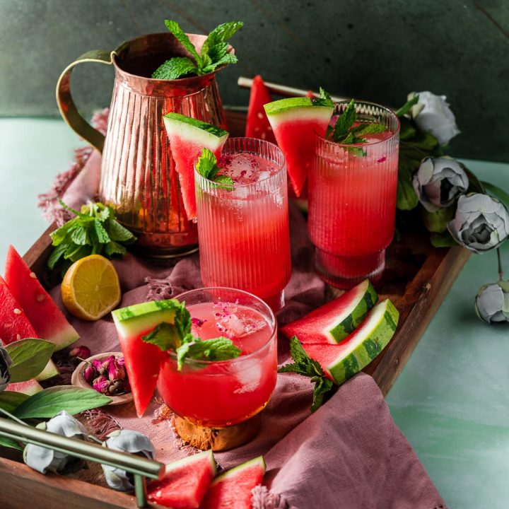This watermelon rose cooler mocktail will add a little extra summer fun to your day! Made with watermelon juice, lime juice, and rosewater, it’s a must-try summer mocktail.