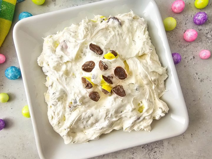 This Easter Cheesecake Dip is smooth, creamy, and loaded with crushed chocolate mini eggs for a festive twist on a cheesecake-inspired dessert.