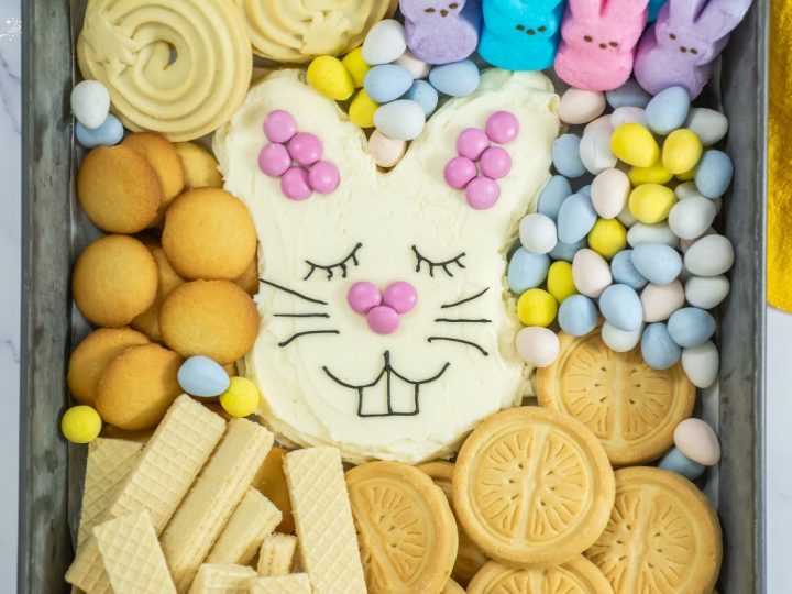 The Bunny Frosting Board is a festive and creative Easter treat featuring bunny-shaped creamy buttercream frosting and sweet dippers—perfect for springtime snacking and decorating fun.