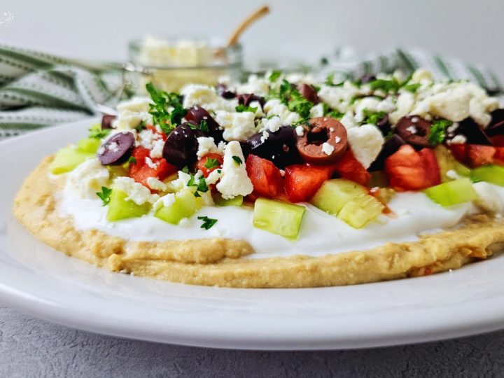 Greek Layered Dip bursts with fresh, vibrant flavors—creamy hummus, tangy yogurt, crisp veggies, and crumbled feta. Pair it with pita crackers or crunchy veggies for an irresistible appetizer everyone will dive into!
