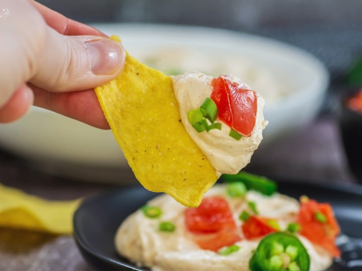 Loaded Black Bean Dip bursts with smoky, zesty flavors from cumin, smoked paprika, and tomato paste blended into creamy beans. Finished with corn, tomatoes, red onion, sour cream, and fresh parsley, it’s a vibrant dip made for tortilla chips.