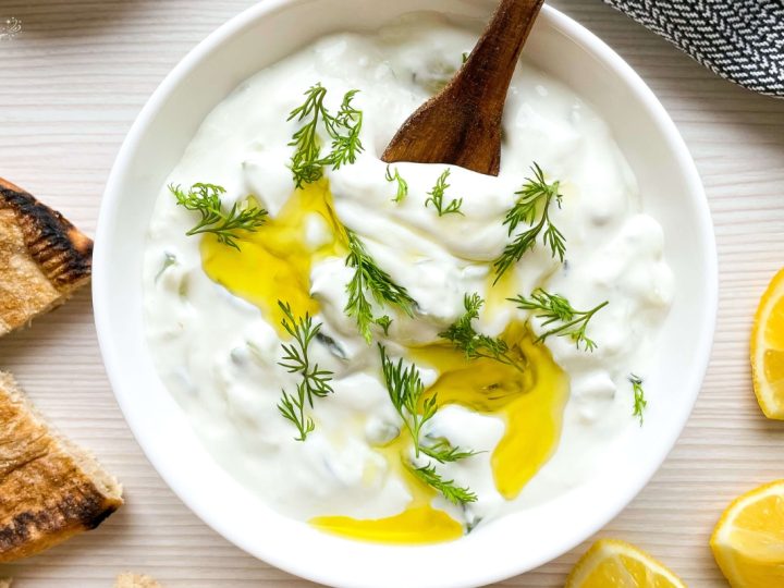 Creamy Tzatziki Dip is cool, tangy, and packed with yogurt, fresh cucumber and garlic flavor. Perfect for pairing with pita chips, crunchy veggies, or adding a zesty kick to sandwiches!